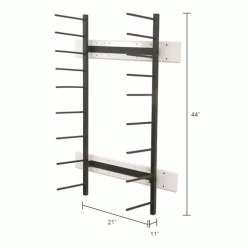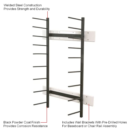 - Includes wall brackets that extend rack 1-1/4″ off the wall to allow for baseboard or chair rail