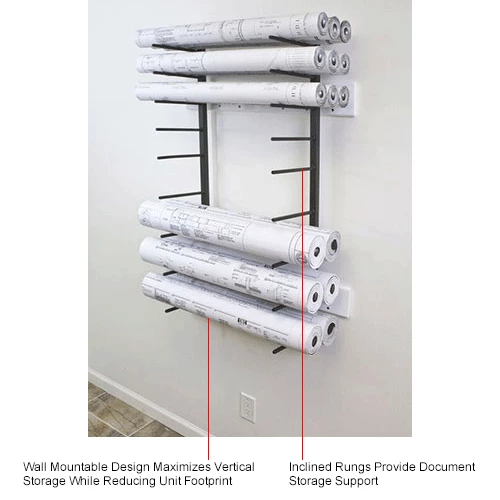 - Compact wall mount design saves valuable floor space to store oversized rolled documents