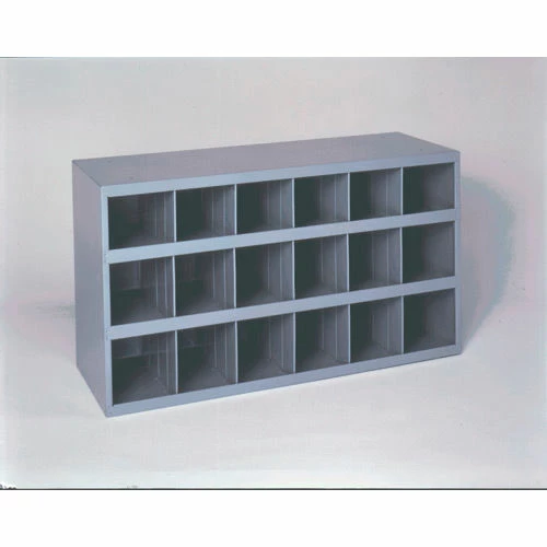 This bin features an all welded, prime cold rolled steel construction and the bin is painted in a durable gray powder coat finish. The 1-1/8″ bin fronts are fully hemmed to display labels and retain parts, the sides are roll-formed for increased strength and stability, the dividers are ribbed and hemmed for added strength, . These bins are modular with most 12″ deep bins and drawer cabinets; mounting holes are located in both the top and bottom. This bin ships fully assembled and optional doors, base, and bin labels are available.