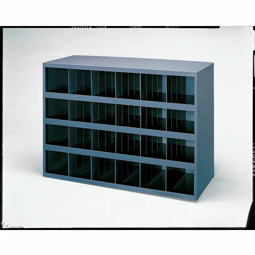 This bin features an all welded, prime cold rolled steel construction and the bin is painted in a durable gray powder coat finish. The 1-1/8″ bin fronts are fully hemmed to display labels and retain parts, the sides are roll-formed for increased strength and stability, the dividers are ribbed and hemmed for added strength, . These bins are modular with most 12″ deep bins and drawer cabinets; mounting holes are located in both the top and bottom. This bin ships fully assembled and optional doors, base, and bin labels are available.