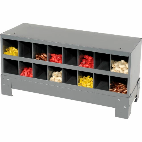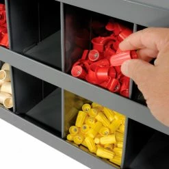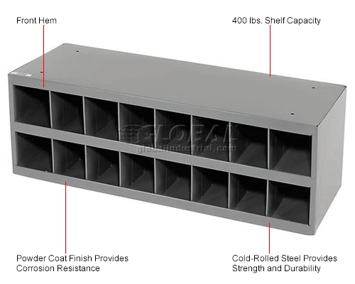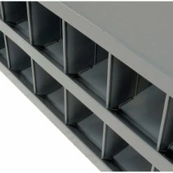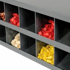 This pre-assembled unit is manufactured with prime cold-rolled steel in a sturdy, all welded construction that will not warp, twist or sag. Bin fronts feature a 1-1/8″W hem to provide support and extra space for labels. Finished in a rust and acid resistant powder coat finish. Units stack to save floor space. Also available with doors.