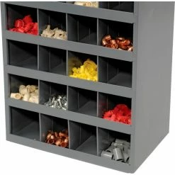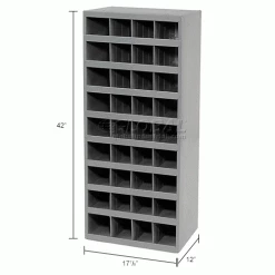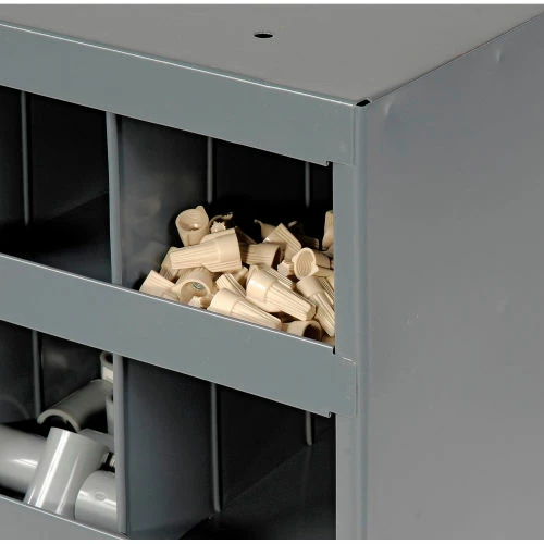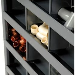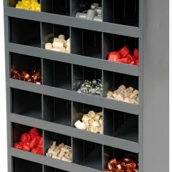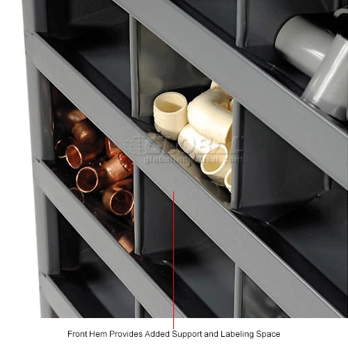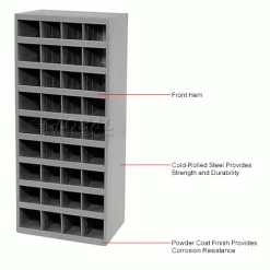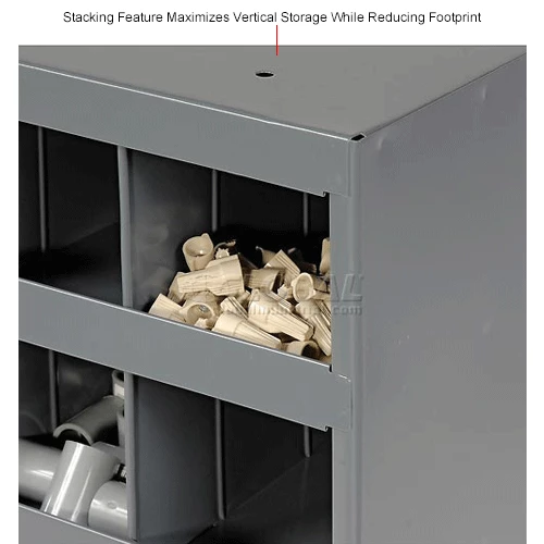 This pre-assembled unit is manufactured with prime cold-rolled steel in a sturdy, all welded construction that will not warp, twist or sag. Bin fronts feature a 1-1/8″W hem to provide support and extra space for labels. Finished in a rust and acid resistant powder coat finish. Units stack to save floor space. Also available with doors.