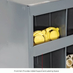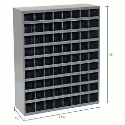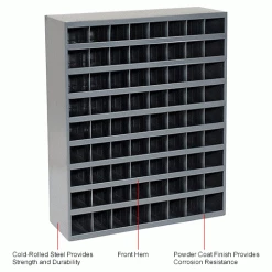 This pre-assembled unit is manufactured with prime cold-rolled steel in a sturdy, all welded construction that will not warp, twist or sag. Bin fronts feature a 1-1/8″W hem to provide support and extra space for labels. Finished in a rust and acid resistant powder coat finish. Units stack to save floor space. Also available with doors.
