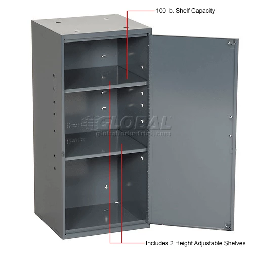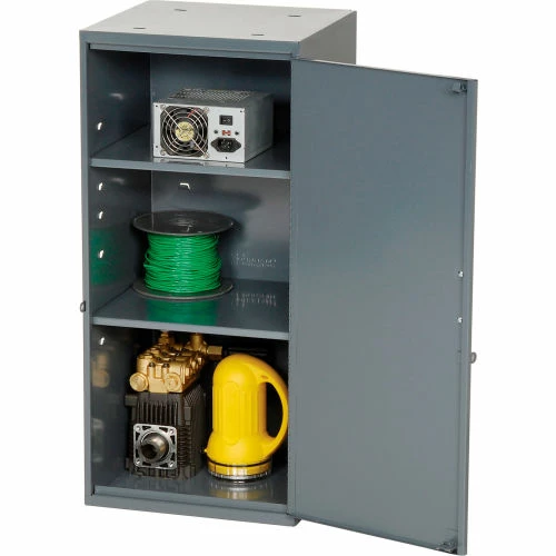 Lockable heavy duty all-welded storage cabinet is ideal for tools, Aerosol cans and miscellaneous items. Cabinet has two adjustable shelves, lock hasp and keyhole slots for easy mounting. Powder coat finish. Ships assembled, ready to use.