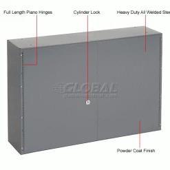Lockable heavy duty all-welded storage cabinet is ideal for tools, Aerosol cans and miscellaneous items. Cabinet features four shelf openings. Powder coat finish. Ships assembled, ready to use.
