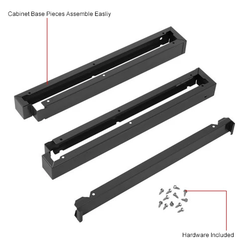 Forklift channels on base of cabinet provide necessary clearance for moving cabinet with pallet truck. Clear dimensions 22″W x 2-1/2″H. Channels increase overall height by 2-1/2″. Hardware included. Overall cabinet height with base is 32″H.