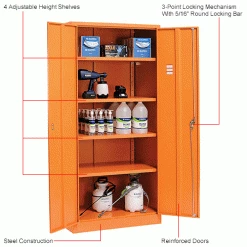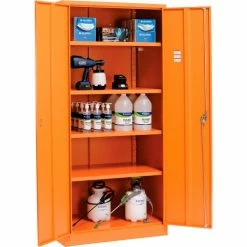 For securable and supreme level storage management at facilities, businesses and other commercial establishments, the Global IndustrialΒ Emergency Preparedness Cabinet is your solution for securely containing medical items, PPE and similar pandemic management supplies. This standalone, double door cabinet occupies minimal space, making it suitable for any hallway, warehouse room or commercial interior. Full body steel construction assures impact resistance to maintain a smooth and industrially resilient quality. Easy to assemble. Bright orange color finish provides high visibility. 1 Year Limited Warranty.
