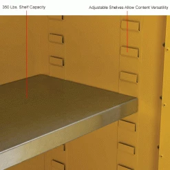 SKU: Global Industrial WB298600 Categories: Cabinets, Flammable Materials Cabinets, Safety Cabinets Tags: 1, 350 lbs, Assembled, Flammable, Global Industrial, Keyed Alike, Storage & Shelving, Yellow