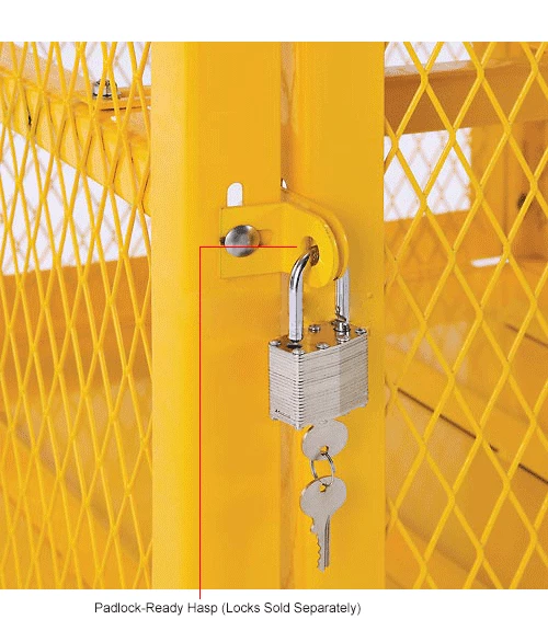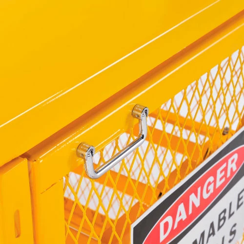 Securely store flammable cylinders in the Global Industrialย Horizontal Cylinder Storage Cabinet with SGL Door. This Cylinder Storage Cabinets is made of solid 14-gauge steel at the top and bottom for strength. The unit features 1/8″x1-3/16″ expanded metal door(s) and sides which allow for ventilation and visibility of contents. Yellow powder-coat finish for lasting durability. Padlock hasp keeps contents secure for safely storing compressed air or gas cylinders and tanks. (padlock not included). Easy assembly.