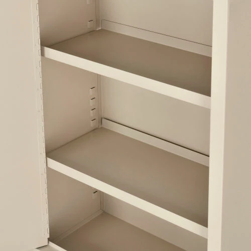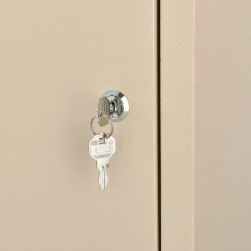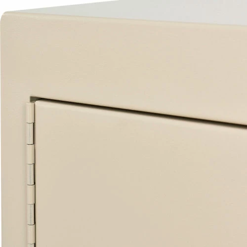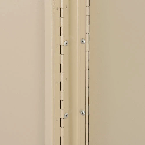 - Full-length piano hinged door with double heavy gauge cam lock to ensure content security