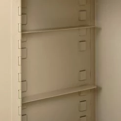 - Full-length piano hinged door with double heavy gauge cam lock to ensure content security