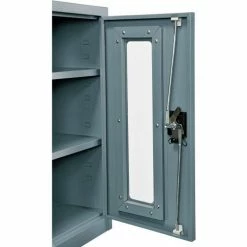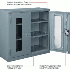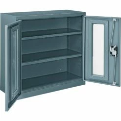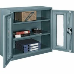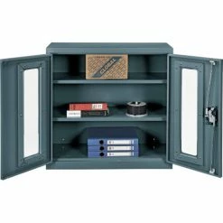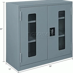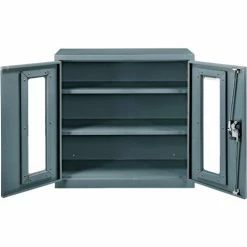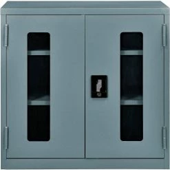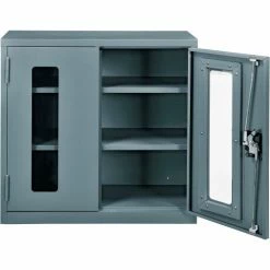 Globalโข Clear View Storage Wall Cabinets Helps Organize Your Work Space And Provide Easy Content Visibility. Contemporary style and durable steel construction to meet a variety of needs. Doors feature channel reinforced impact resistant acrylic windows, 3-point locking system with pry-resistant solid steel 5/16″ latching rods. Recessed locking handle with 2 keys for safety and security. Box-formed shelves with full width steel channel reinforcement to help prevent shelf deflection. Tough, scratch-resistant powder gray coat finish. Ships Assembled.