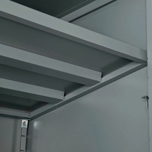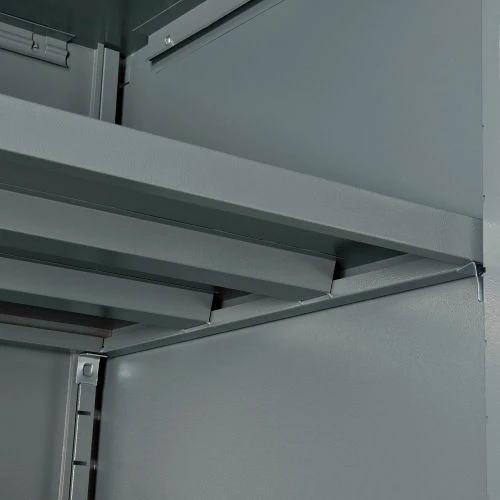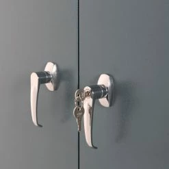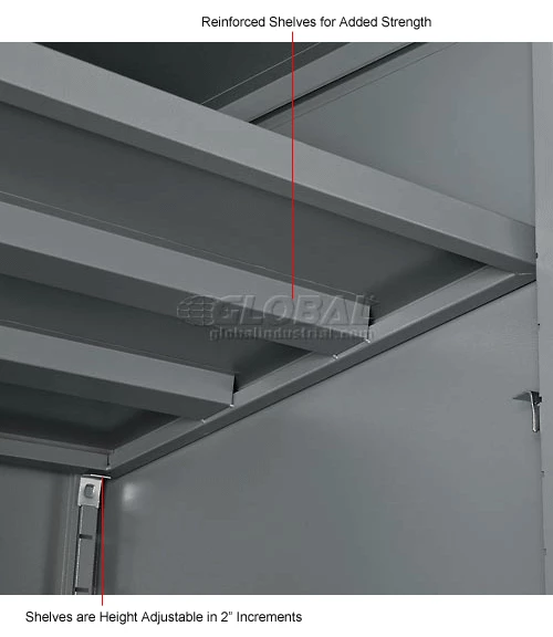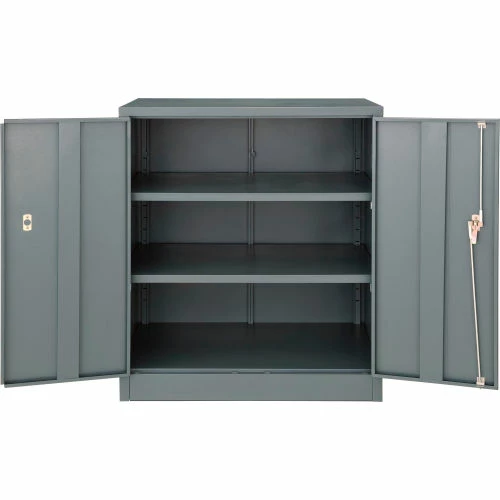 Contemporary style and durable construction withstands heavy warehouse use, these cabinets fill a variety of needs at an excellent price. Made of durable cold rolled steel using 24 gauge steel body reinforced with a 22 gauge steel frame. Reinforced doors include 3-point locking mechanism with a super strong 5/16″ round locking bar and nylon guides for silent operation and consistent alignment. Lever handles with 2 keys for safety and security. Counter Height Cabinets feature two 22 gauge steel shelves that are height adjustable at 2″ increments. Offers 150 lb. shelf capacity. Durable powder coat finish.