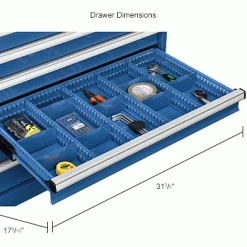 Metal Divider Kit for Globalβ’ Modular Cabinets, 36″W x 24″D, includes 4 long partitions and 6 short dividers. Partitions divide drawers into rows, and Dividers define compartments within the rows. Partitions and dividers are adjustable to allow flexibility of drawer subdividing for the highest density storage. Partitions can be locked into place by the included screws. Partitions install (6-1/2″) apart. Blue color.