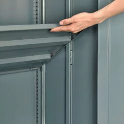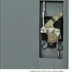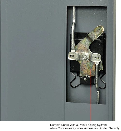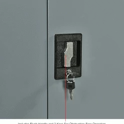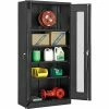Adjustable shelves provide application versatility and accommodate all your storage needs. Double doors with 3-point locking system allow convenient content access and added security. Textured powder coat finish provides scratch and chip resistance. Includes flush handle and 2 keys for obstruction-free operation. Maximum shelf capacity is 200 lbs. Color finish is Black. Dimensions are 36″W x 18″D x 42″H. 1 Year Limited Warranty.