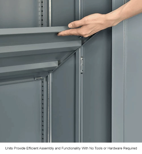 These innovative cabinets were designed for superior functionality and swift assembly. The revolutionary design makes for the fastest set-up of any unassembled cabinet in the market. No tools or hardware are needed. Complete assembly happens in a matter of minutes. The cabinets are made of cold rolled steel for long lasting durability and dependability. Store your equipment, tools and supplies in an organized fashion.