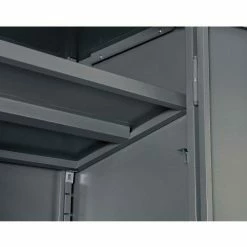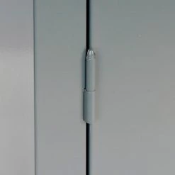 Storage cabinet features reinforced doors that open a full 180ยฐ for complete access and close. A three-point locking mechanism with a super strong 5/16″ round locking bar and nylon guides for silent operation and consistent alignment. Lever handles with 2 keys for safety and security. Break resistant polypropylene plastic bins have generous hopper openings offer easy viewing and access. Cabinet includes two 22 gauge steel shelves that are height adjustable at 2″ increments. Offers 150 lb. shelf capacity. Durable powder coat finish. Cabinet measures 36″W x 18″D x 42″H. Assembled cabinet is not returnable.