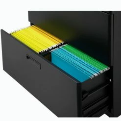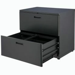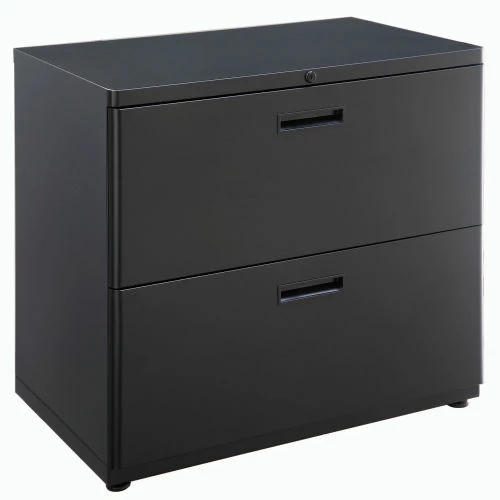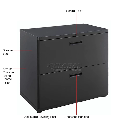 Keep paperwork organized in these attractive filing cabinets. Drawers have full drawer extension for complete access to all documents. File drawers allow left-to-right letter and legal size hang filing and front-to-back filing using file bars. Designed with an anti-tip interlock mechanism to permit only one drawer to be open at a time. Equipped with adjustable leg levelers for uneven floors. Comes with central lock with keys. Recessed handle prevents accidental snags. Durable scratch and chip resistant baked enamel finish. 29″H.