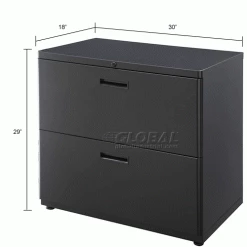 Keep paperwork organized in these attractive filing cabinets from Interion® By Global Industrial. Drawers have full drawer extension for complete access to all documents. File drawers allow left-to-right letter and legal size hang filing and front-to-back filing using file bars. Designed with an anti-tip interlock mechanism to permit only one drawer to be open at a time. Equipped with adjustable leg levelers for uneven floors. Comes with central lock with keys. Recessed handle prevents accidental snags. Durable scratch and chip resistant baked enamel finish. 29″H.