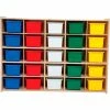 Conveniently store classroom equipment in these twenty large tubs. 60″ wide x 15″ deep x 30″ high.