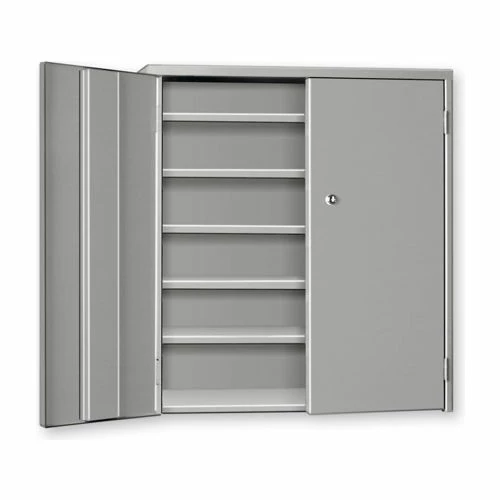 This Wall and Bench Cabinet keeps small parts organized and out of the way. Features 20-gauge all welded steel construction for long lasting durability. The cabinet can be mounted on a wall to save floor space. Doors are secured with a cylinder lock for secure storage. 2 keys included. Three fixed shelves included.