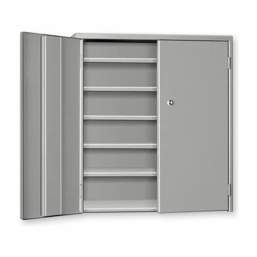 This Wall and Bench Cabinet keeps small parts organized and out of the way. Features 20-gauge all welded steel construction for long lasting durability. The cabinet can be mounted on a wall to save floor space. Doors are secured with a cylinder lock for secure storage. 2 keys included. Two fixed shelves included.