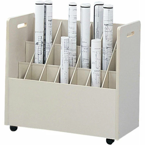 The Mobile Roll File is an economic organizing solution perfect for work-in-progress. Your Roll File is attractive and sturdy, constructed of particle board with an attractive textured vinyl laminate finish. Easily mobile with 2″ swivel casters, your file makes your office a multitasking workspace. Complete with a grandstand design with square tubes for trouble-free removal of contents. Assembly is quick and easy. Includes 21 compartments.