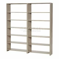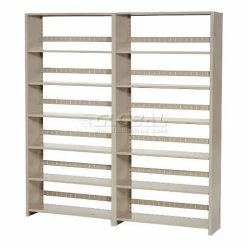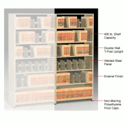 Imperial shelving offers a versatile storage solution designed for any office environment. Uniquely designed shelving saves up to 60% floor space compared to conventional filing equipment. Perfect for tab filing, making files more visible and accessible by keeping them upright and in order. Steel shelving is attractive and functional for the front office, as well as, rugged for the warehouse or storage room. Double walled T-post uprights feature welded steel panels, steel shoulder rivets and shelf supports to withstand up to 400 lb. shelf capacity. Steel shelves are height adjustable at 1-1/2″ increments Includes five large 10-1/2″D x 7-1/2″H adjustable dividers per shelf that adjust along the backstop at 2″ increments to keep folders upright. Shelves include backstop to retain files. Includes non-marring molded polyethylene floor caps to protect floors and carpets. Add-On Units include easily connects to Starter or other Add-on units to help create rows or aisles of shelving. Utilizes one pair of uprights and one side panel for installation and reduced costs. Sand enamel finish. Easy assembly.