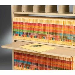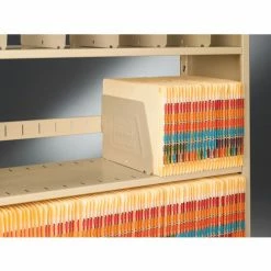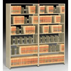 Imperial shelving offers a versatile storage solution designed for any office environment. Uniquely designed shelving saves up to 60% floor space compared to conventional filing equipment. Perfect for tab filing, making files more visible and accessible by keeping them upright and in order. Steel shelving is attractive and functional for the front office, as well as, rugged for the warehouse or storage room. Double walled T-post uprights feature welded steel panels, steel shoulder rivets and shelf supports to withstand up to 400 lb. shelf capacity. Steel shelves are height adjustable at 1-1/2″ increments Includes five large 10-1/2″D x 7-1/2″H adjustable dividers per shelf that adjust along the backstop at 2″ increments to keep folders upright. Shelves include backstop to retain files. Includes non-marring molded polyethylene floor caps to protect floors and carpets. Add-On Units include easily connects to Starter or other Add-on units to help create rows or aisles of shelving. Utilizes one pair of uprights and one side panel for installation and reduced costs. Sand enamel finish. Easy assembly.