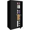 Clean, contemporary style and durable construction makes this steel storage cabinet perfect for office or warehouse environments. Made of durable cold rolled steel using 24 gauge steel body reinforced with a 22 gauge steel frame. Reinforced doors include 3-point locking system with die cast chrome plate locking handles for security. Locking flat bar rods include nylon guides for smooth door operation. 22 gauge steel shelves are height adjustable at 2 increments. 150 lb. shelf capacity. Wardrobe Cabinet features one full width fixed shelf and one full width garment rod. Durable powder coat finish. All Tennsco products are Proudly Made in the USA.